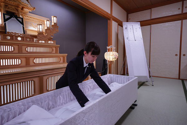 ◆納棺の際、納棺師により茅野シティホールのオリジナルの綿入れで旅のお仕度をさせていただきます。